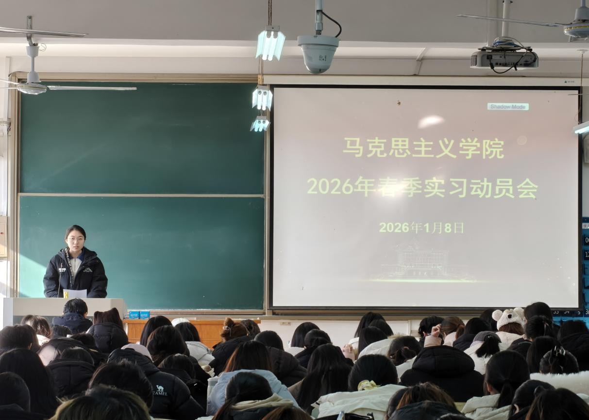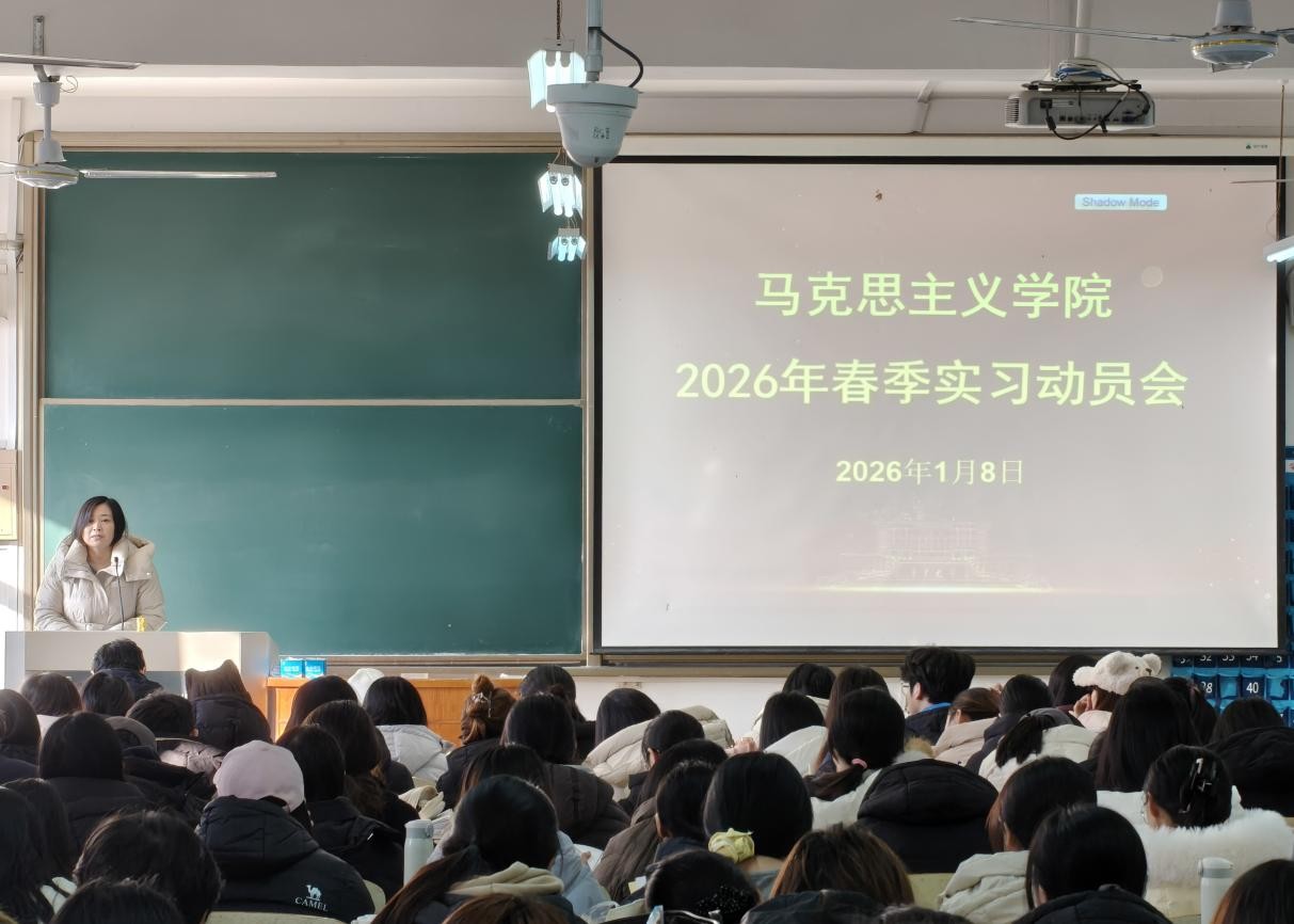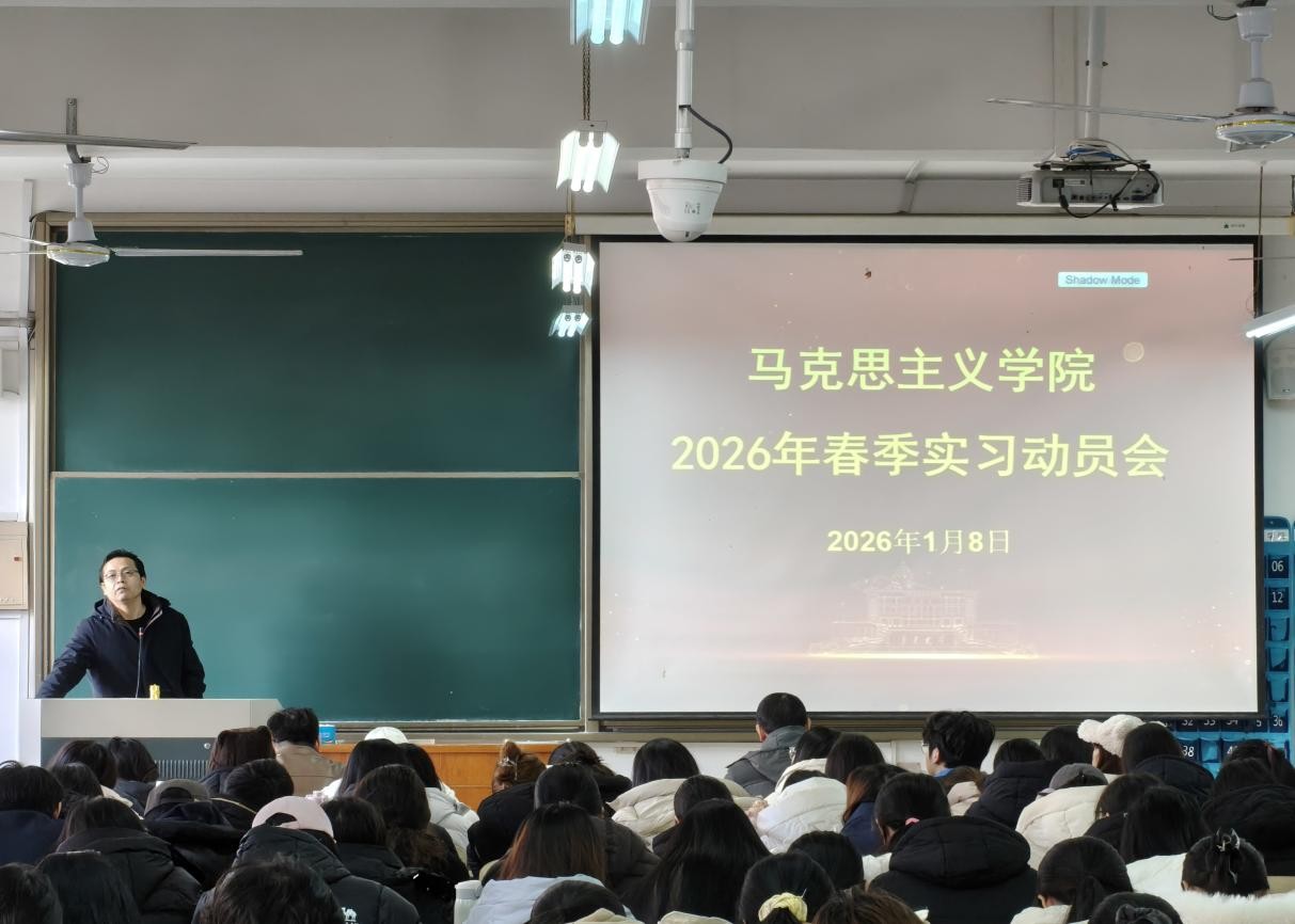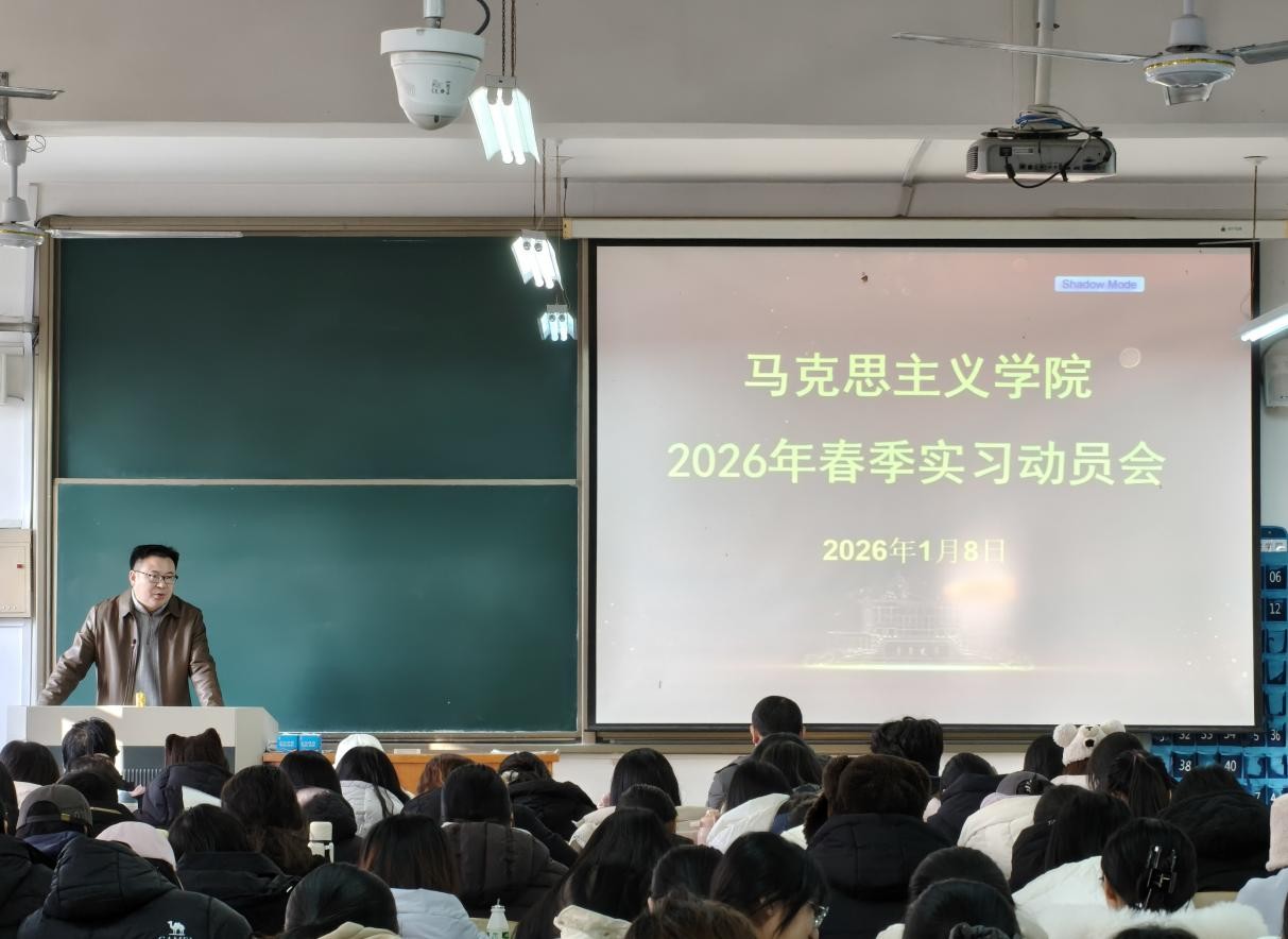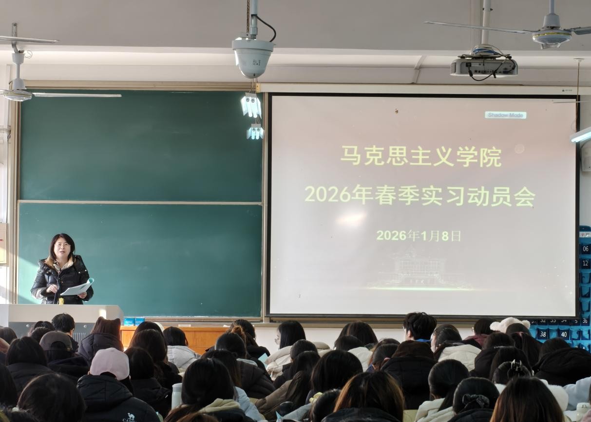 近日,马克思主义学院组织2023级全体本科生开展春季实习动员大会。学院领导、微格教学教师、班主任代表和全体2023级学生参加此次动员大会,副院长王茜主持会议。