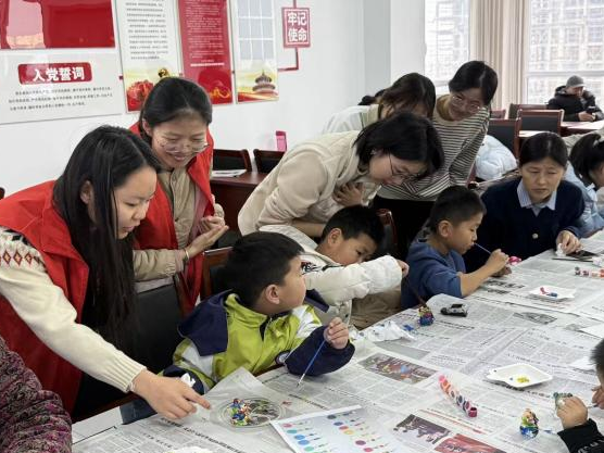 活动现场,社区工作者和实践团队提前准备好了颜料、画笔、调色盘等工具。实践团队结合美育理念与红色文化内涵,向参与活动的老人和小朋友讲解创作技巧,提供耐心指导与协助。小朋友们充分发挥想象力,在创作中融入红色元素,用鲜明色彩展现蓬勃朝气。活动以石膏娃娃为载体,践行了"奉献、友爱、互助、进步"的志愿服务精神,既让社区老人和小朋友感受到陪伴的温暖,也让实践团队成员在服务中进一步增强了责任意识。